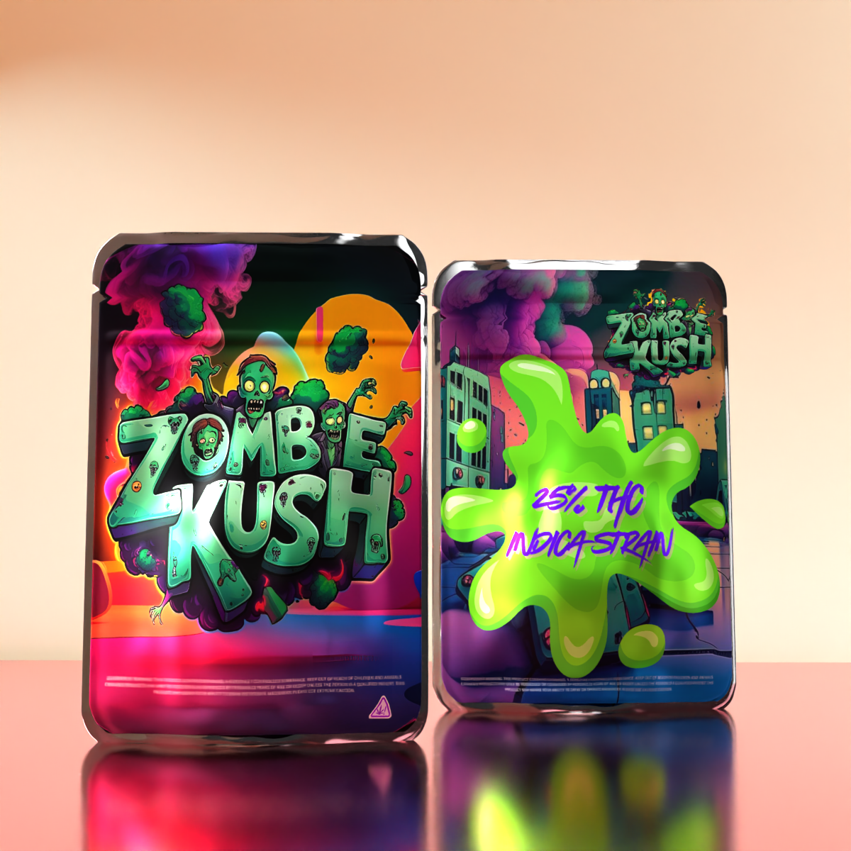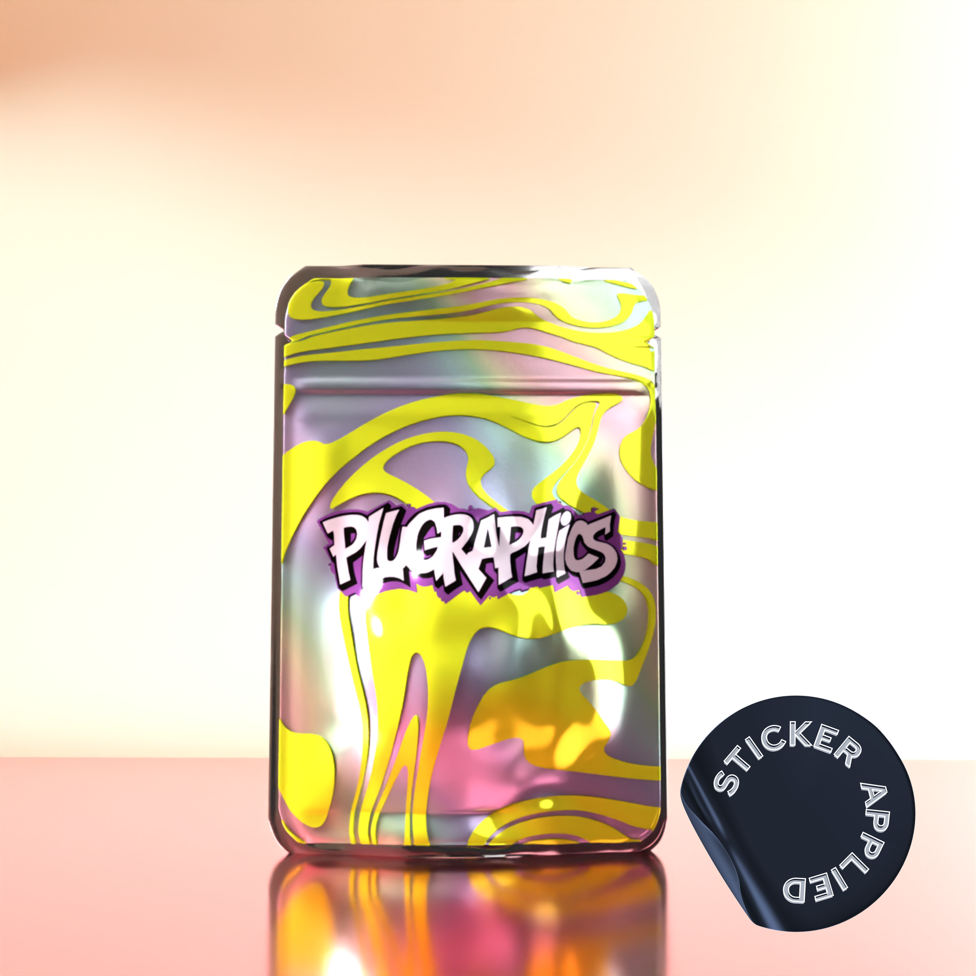 Fits 7g (¼ oz) of flower. Airtight, smell-proof, and made for daily use or special drops. Each bag comes with your custom stickers applied to both front and back.